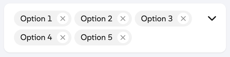 removable-tags: Displays each selected option label as removable tags that wrap to the next line.